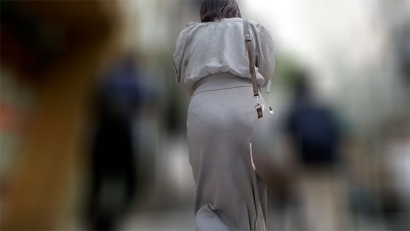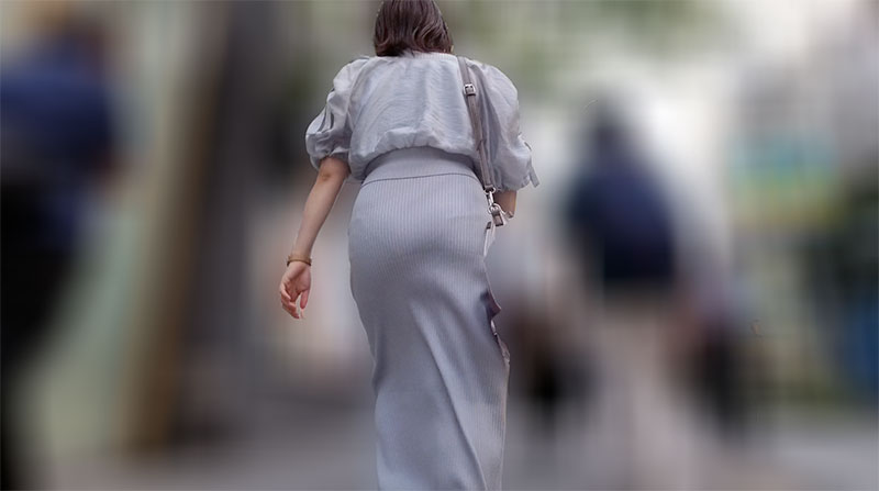 微妙に見え隠れするパンティラインが妄想を誘うお姉さん!