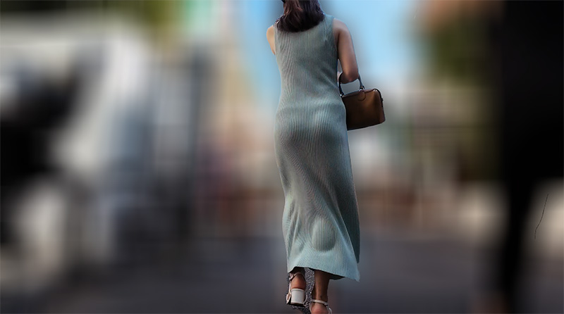 形の良いお尻にはやはりTバックなのでしょうね!リヴニットのワンピからの浮き出るTラインは