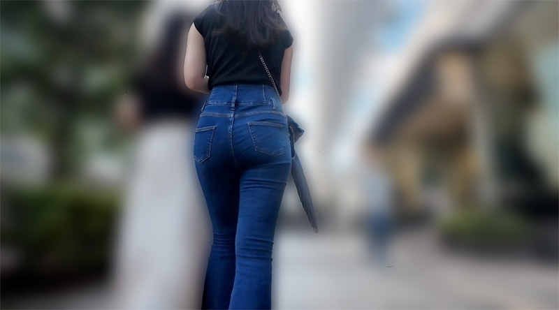 ミニマムデニムの巨尻お姉さん、低身長の中では爆尻の部類になるのかもしれません。