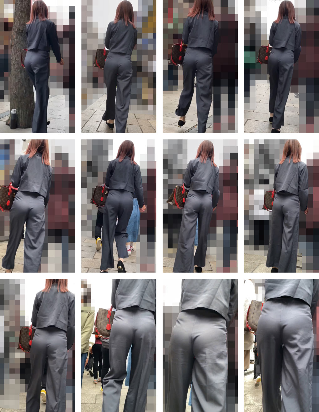 上下グレーのセットアップコーデでキメたセレブマダムの腰回りが凄いことになっていました!薄生地越しに完熟フェロモンを散布しまくっております!