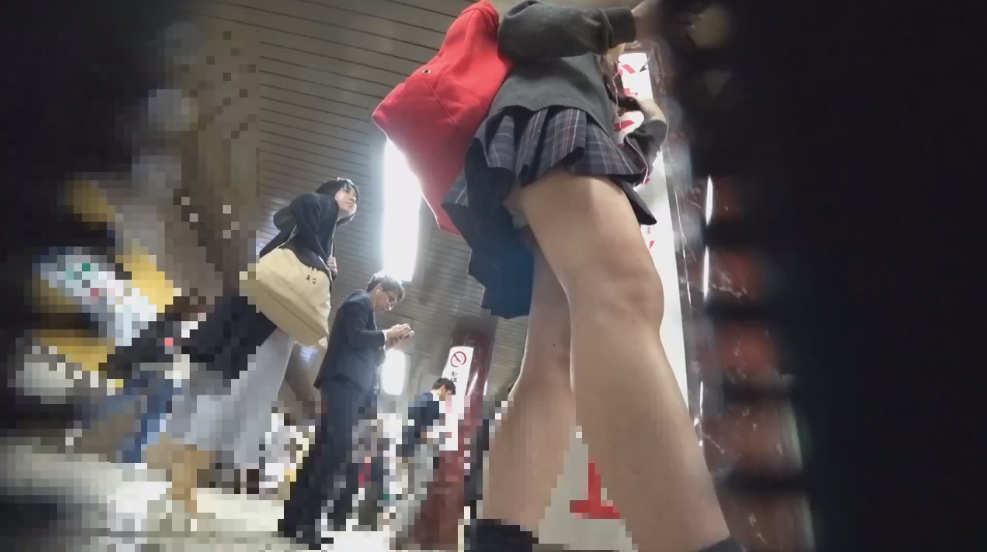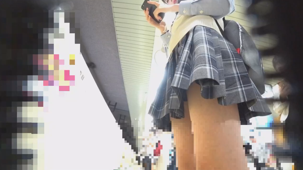 本編顔モザナシ リアルな超激カワな制服JK2名を逆さパンチラ盗撮! 電車待ち、エスカレーターで純白パンティがチラ見え連発