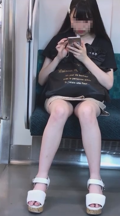 股が閉じない私服JKを対面パンチラ盗撮! 超ミニスカなのに股を閉じないJKは黒パン丸見えww