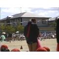放送席のテントに〇〇小学校と記載があります。歴史と伝統がある学校のようです。