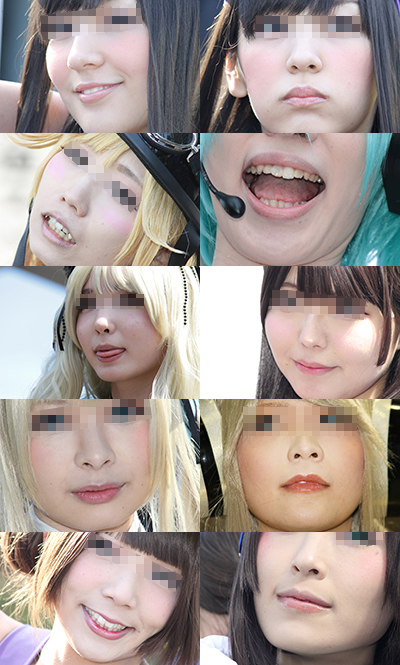 コスプレイヤーの皆さんの顔面に寄ってみました。 肌の質感や、歯茎、鼻の穴など、フェチ要素たっぷりとなっております。 枚数88枚
