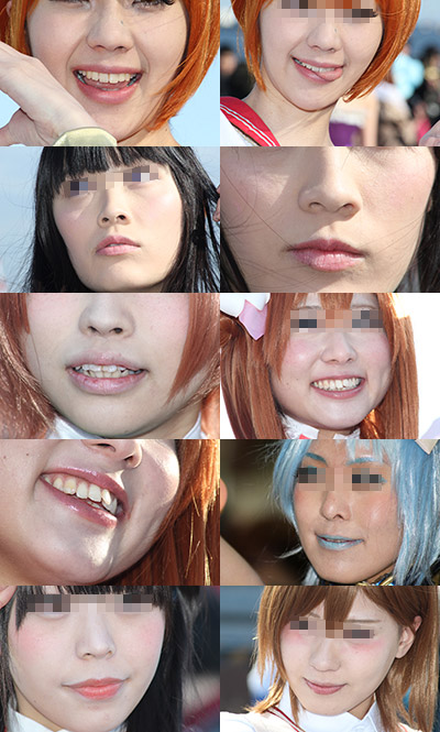 コスプレイヤーの皆さんの顔面に寄ってみました。 肌の質感や、歯茎、鼻の穴など、フェチ要素たっぷりとなっております。 枚数103枚