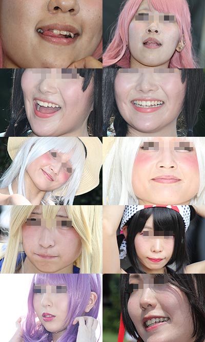 コスプレイヤーの皆さんの顔面に寄ってみました。 肌の質感や、歯茎、鼻の穴など、フェチ要素たっぷりとなっております。 枚数95枚