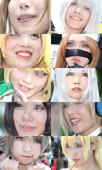 コスプレイヤーの皆さんの顔面に寄ってみました。 肌の質感や、歯茎、鼻の穴など、フェチ要素たっぷりとなっております。 枚数104枚