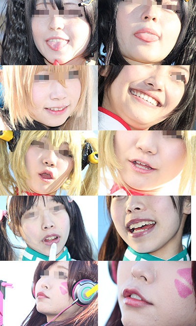 コスプレイヤーの皆さんの顔面に寄ってみました。 肌の質感や、歯茎、鼻の穴など、フェチ要素たっぷりとなっております。 枚数95枚 超高画質
