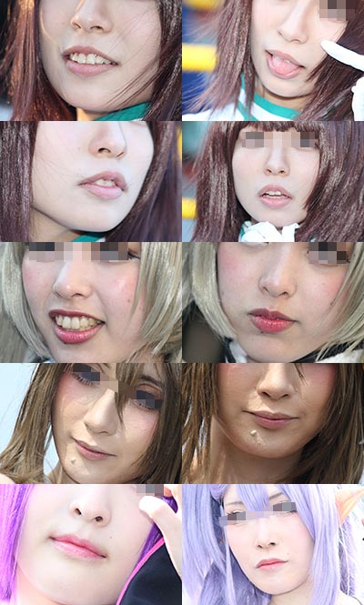 コスプレイヤーの皆さんの顔面に寄ってみました。 肌の質感や、歯茎、鼻の穴など、フェチ要素たっぷりとなっております。 枚数123枚 超高画質