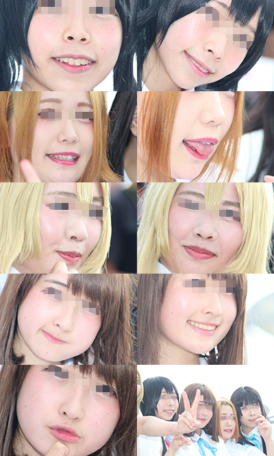 コスプレイヤーの皆さんの顔面に寄ってみました。 肌の質感や、歯茎、鼻の穴など、フェチ要素たっぷりとなっております。 枚数96枚 超高画質