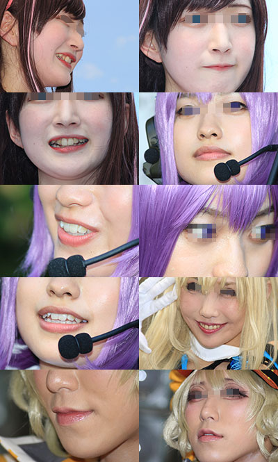 コスプレイヤーの皆さんの顔面に寄ってみました。 肌の質感や、歯茎、鼻の穴など、フェチ要素たっぷりとなっております。 枚数99枚
