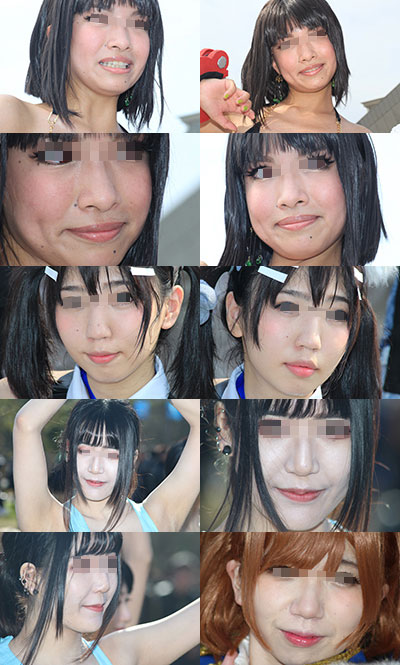 コスプレイヤーの皆さんの顔面に寄ってみました。 肌の質感や、歯茎、鼻の穴など、フェチ要素たっぷりとなっております。 枚数95枚