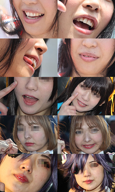 コスプレイヤーの皆さんの顔面に寄ってみました。 肌の質感や、歯茎、鼻の穴など、フェチ要素たっぷりとなっております。 枚数97枚