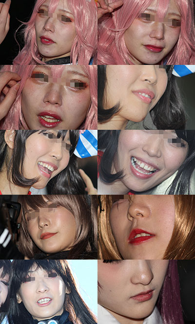 コスプレイヤーの皆さんの顔面に寄ってみました。 肌の質感や、歯茎、鼻の穴など、フェチ要素たっぷりとなっております。 枚数92枚