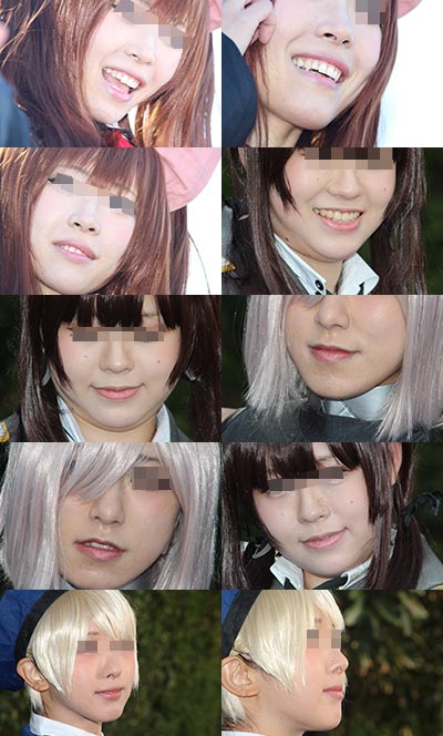 コスプレイヤーの皆さんの顔面に寄ってみました。 肌の質感や、歯茎、鼻の穴など、フェチ要素たっぷりとなっております。 枚数106枚