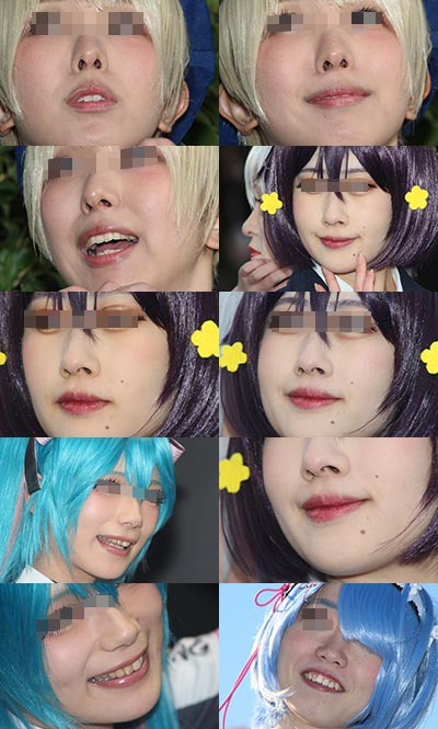 コスプレイヤーの皆さんの顔面に寄ってみました。 肌の質感や、歯茎、鼻の穴など、フェチ要素たっぷりとなっております。 枚数118枚