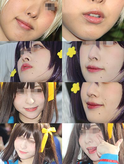 コスプレイヤーの皆さんの顔面に寄ってみました。 肌の質感や、歯茎、鼻の穴など、フェチ要素たっぷりとなっております。 枚数97枚
