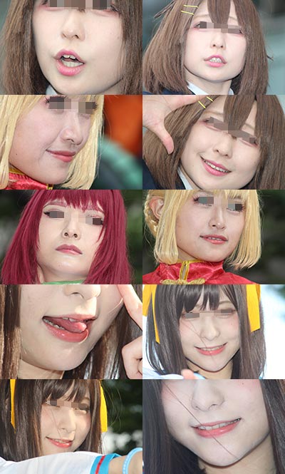 コスプレイヤーの皆さんの顔面に寄ってみました。 肌の質感や、歯茎、鼻の穴など、フェチ要素たっぷりとなっております。 枚数100枚