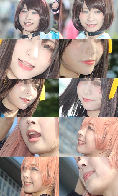 コスプレイヤーの皆さんの顔面に寄ってみました。 肌の質感や、歯茎、鼻の穴など、フェチ要素たっぷりとなっております。 枚数90枚