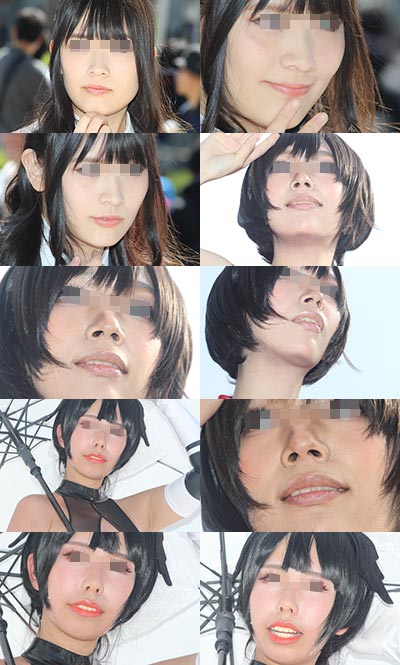 コスプレイヤーの皆さんの顔面に寄ってみました。 肌の質感や、歯茎、鼻の穴など、フェチ要素たっぷりとなっております。 枚数96枚
