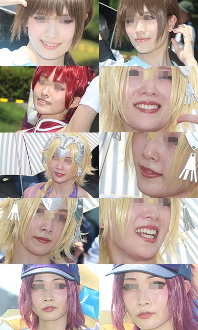 コスプレイヤーの皆さんの顔面に寄ってみました。 肌の質感や、歯茎、鼻の穴など、フェチ要素たっぷりとなっております。 枚数95枚