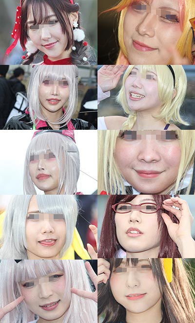 コスプレイヤーの皆さんの顔面に寄ってみました。 肌の質感や、歯茎、鼻の穴など、フェチ要素たっぷりとなっております。 枚数94枚