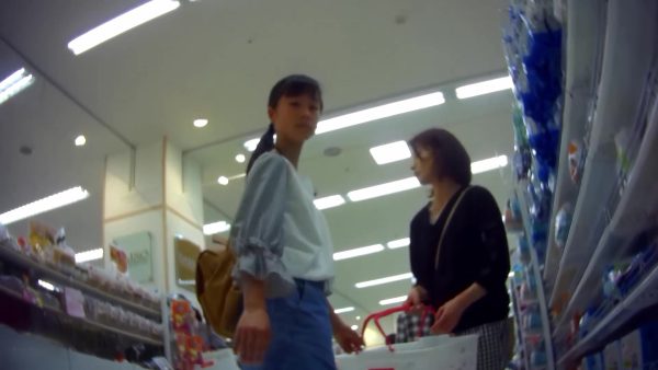 お母さんらしき女性と一緒に買い物中の、デニムスカートの女の子です。 あまりにもガッツリ映ってしまったため、サムネにはモザイク処理をさせていただきました。