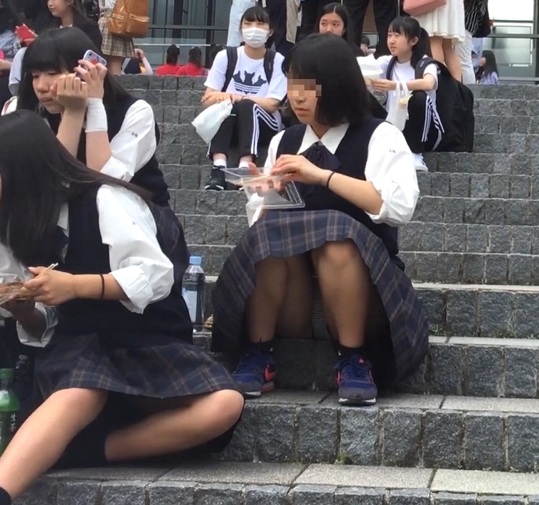 本編顔モザナシ リアルな清楚系激カワ制服JKのしゃがみ込みパンチラ盗撮! しゃがみ込んで綺麗な三角形の白生パンティが丸見え👍