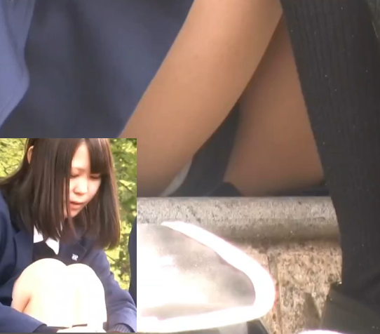 リアルな激カワ制服JK3名の対面パンチラ盗撮風!白+紺+ハミパン