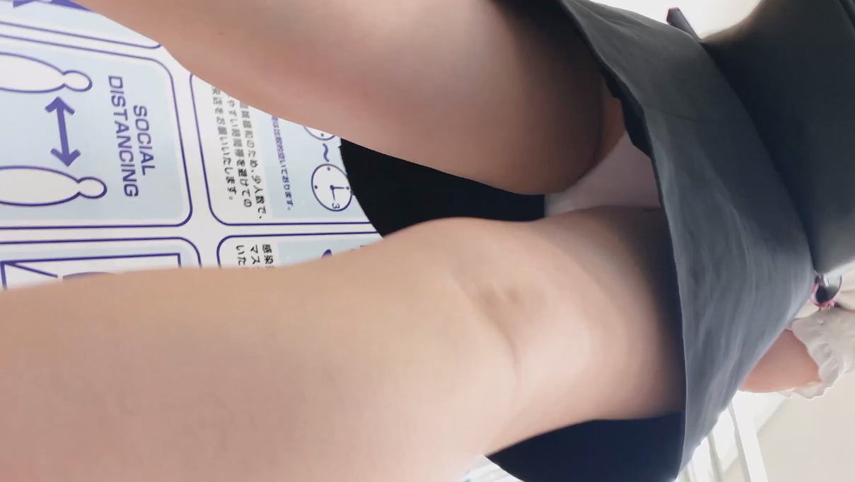 黒マスクのミニスカJKの純白パンティをガッツリ撮影!