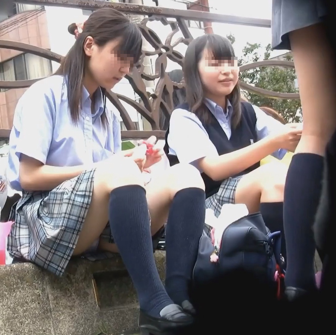 大人しそうな可愛い清楚系制服JKをしゃがみ込みパンチラ盗撮!