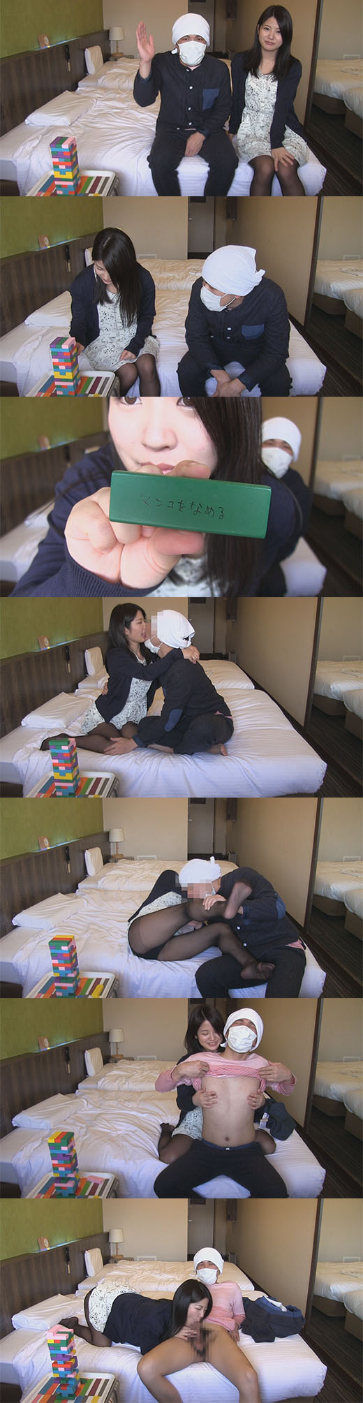 まあ所詮チャラい若者のゲームですから。あってもキスくらいだと思います。 ですので、せっかくこうやって動画を配信するわけですから最後は最後までイク、オリジナルのLOVEジェンガを作ってみました。