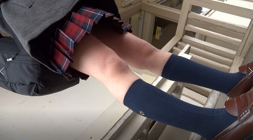 女子高生リボン&両サイド刺繍柄♡を逆さ撮り
