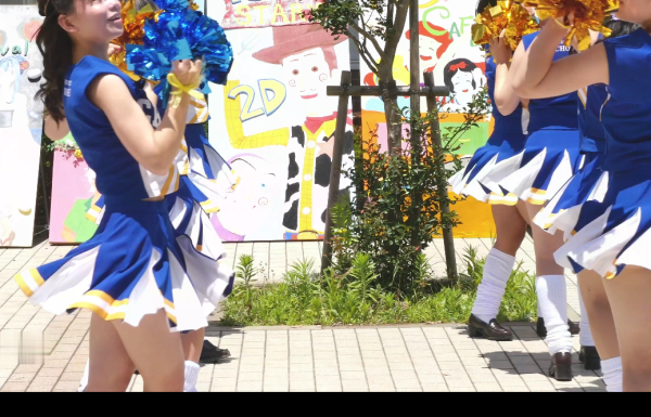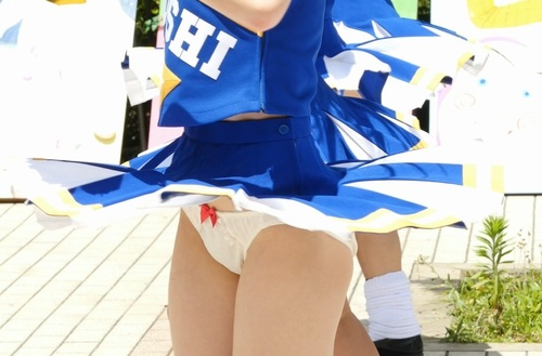 回転のシーンでスカートが舞い上がり、赤いリボンと