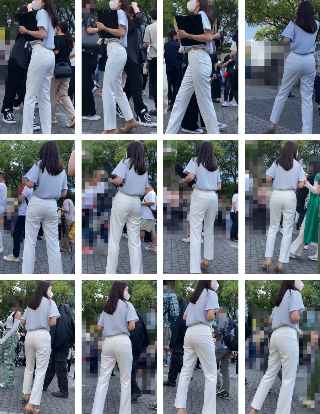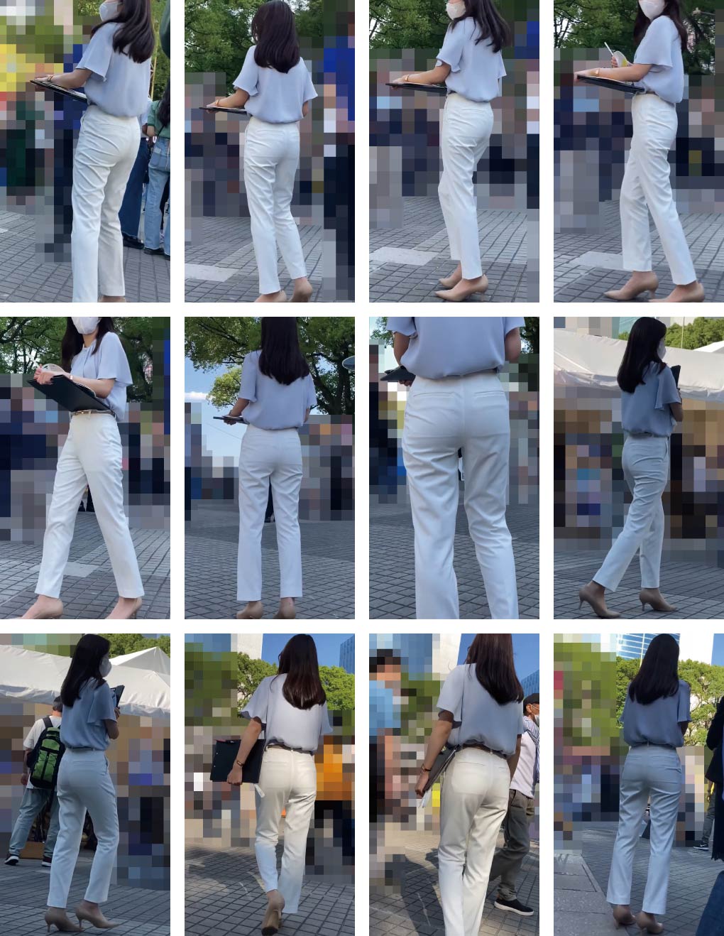 イベント会場でアンケート用紙を抱えてターゲット索敵中のキレイめビジネスコーデなクールビューティーさんです!