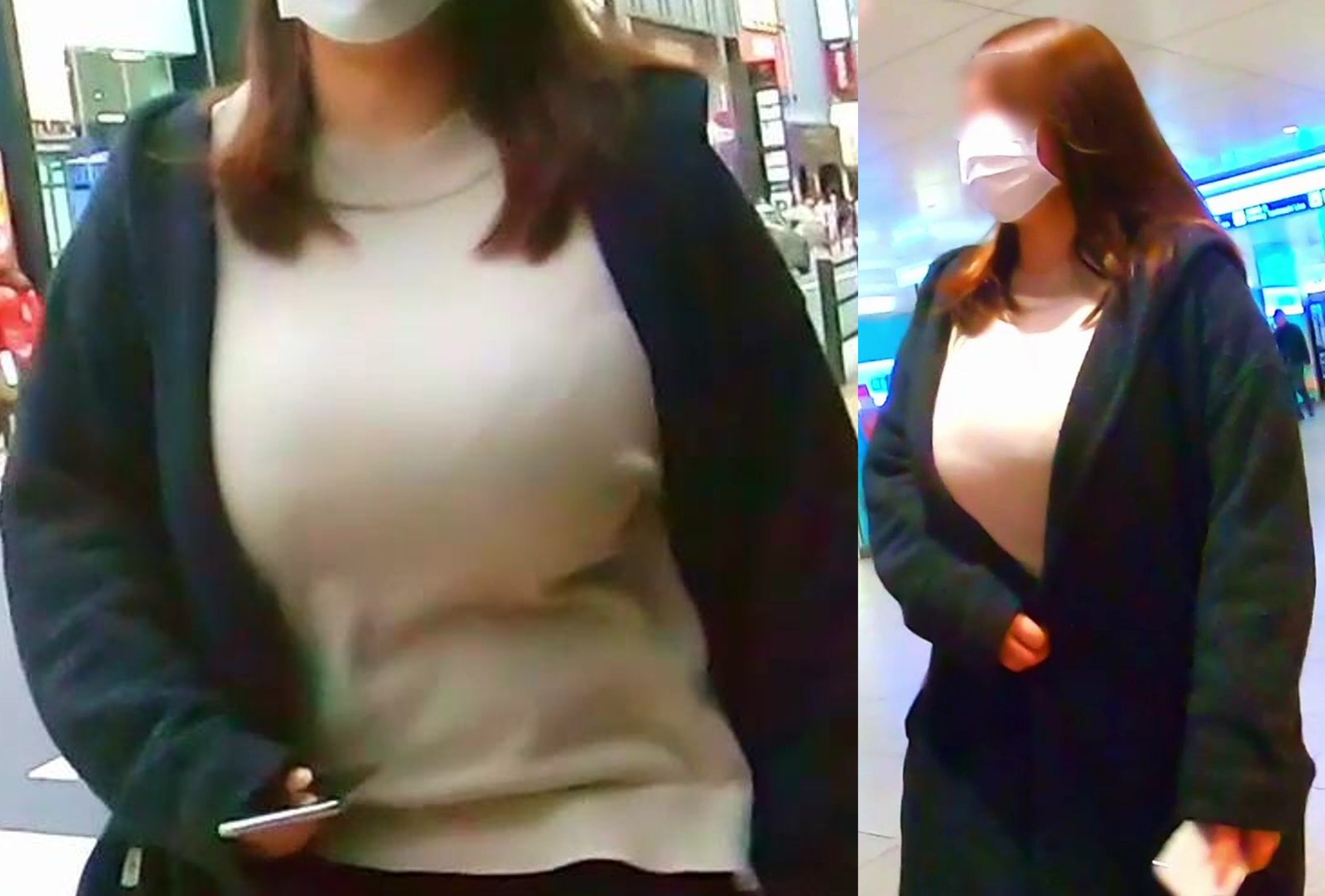 おっぱいがデカすぎてご自身も羞恥心があるのか、ちょいちょいコートで隠す様が逆にイヤらしさを引き立ててしまっていることにはお気づきではないご様子w