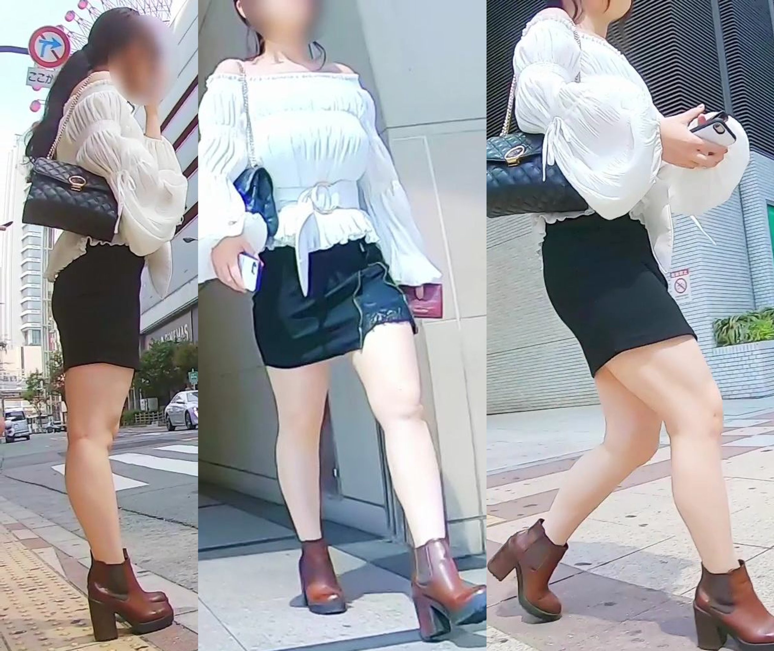 From the black mini skirt, her thick, juicy thighs extend downward, and the entire bare lower legs—from calves to thighs—are so captivating you’ll be hooked instantly!