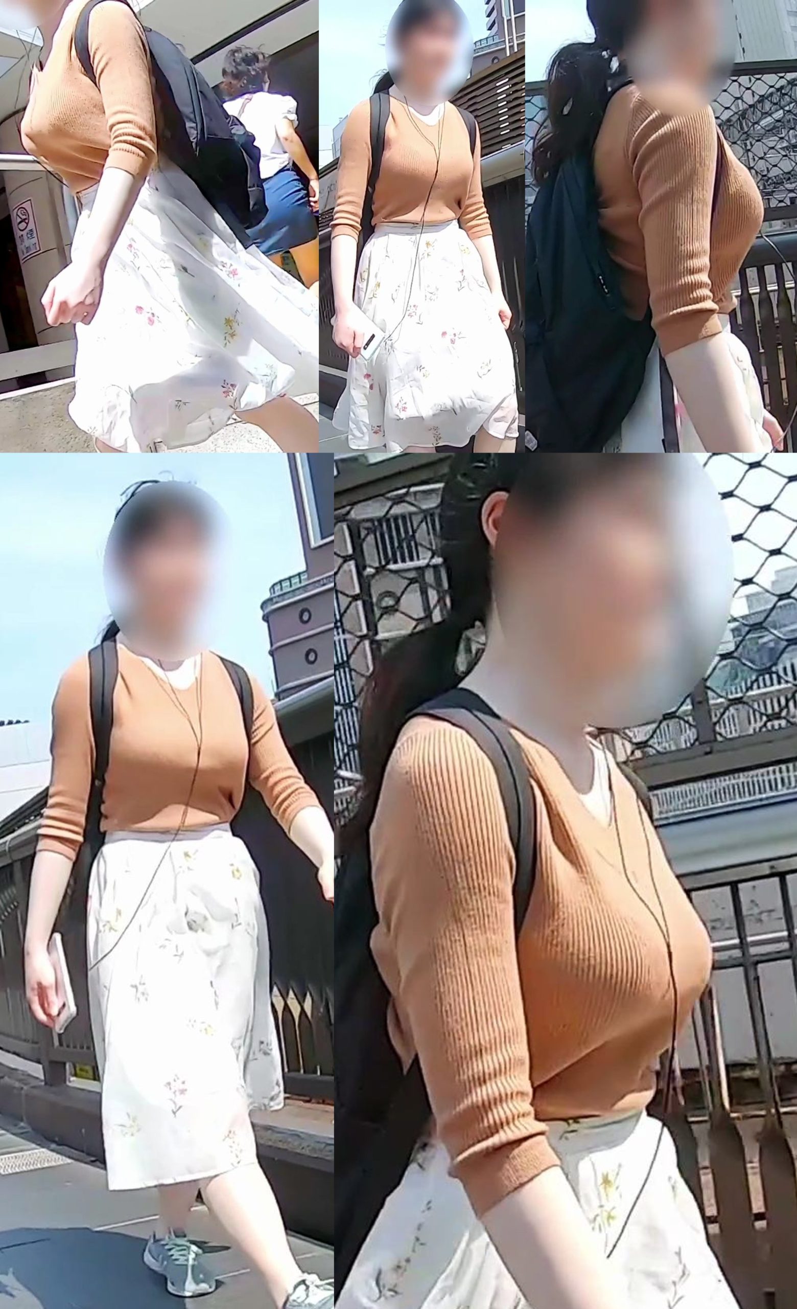 早歩きでボリューミーなおっぱいをバッチリ揺らして、周囲の乳フェチたちへのアピールを欠かささない様子に感謝です!