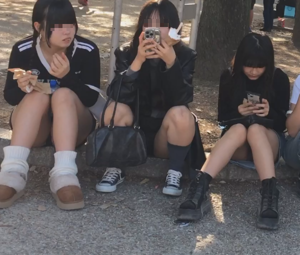 【顔有り】ガニ股で座るJK集団を対面パンチラ盗撮風!